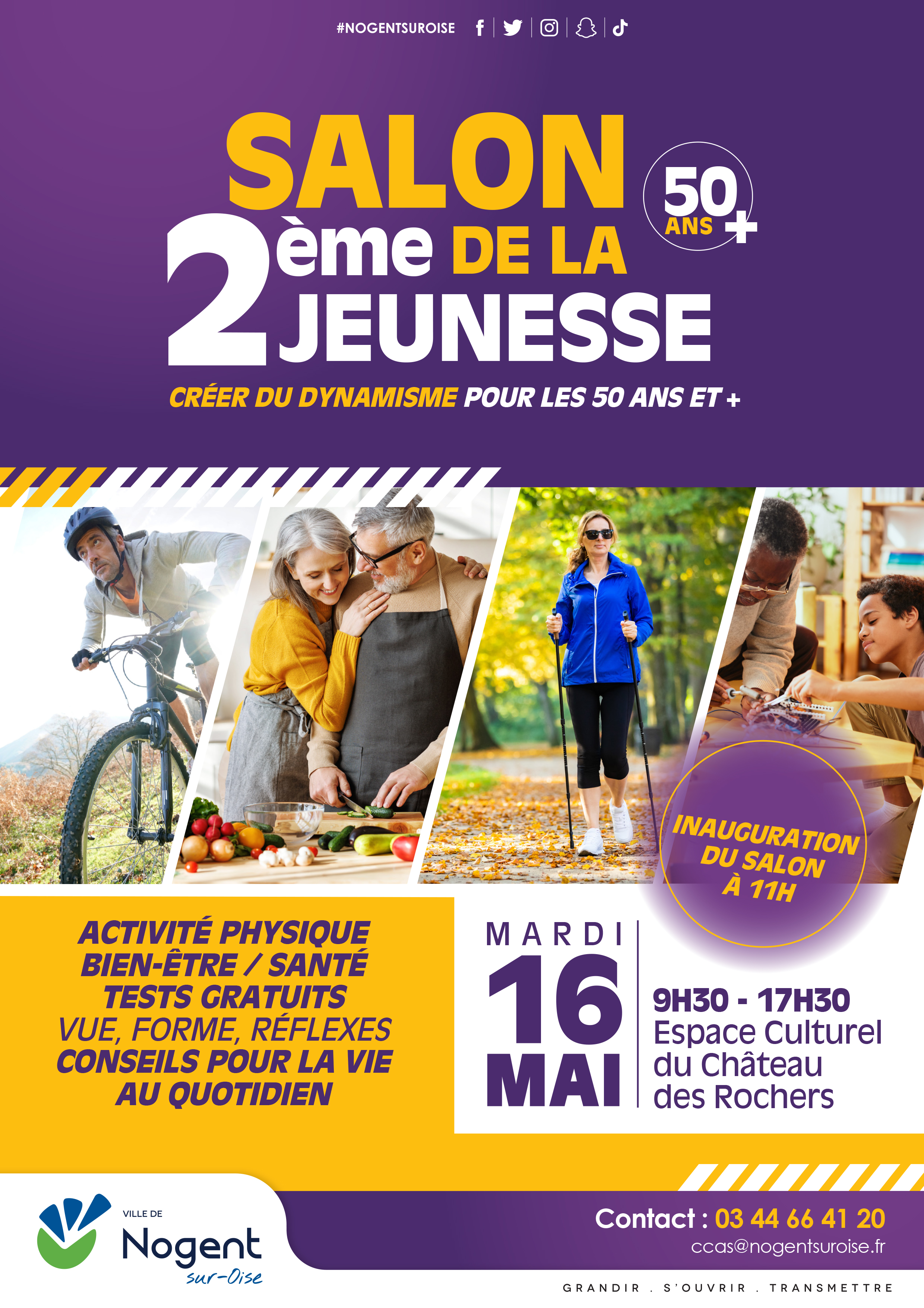 Mardi 16 mai 2023, de 9h30 à 17h30, la première édition du "Salon de la 2ème jeunesse" organisé par la Ville de Nogent-sur-Oise a réuni plus de 300 visiteurs. Une trentaine de stands dédiés à la prévention santé, à la promotion de la forme étaient tenus par de nombreuses structures locales.